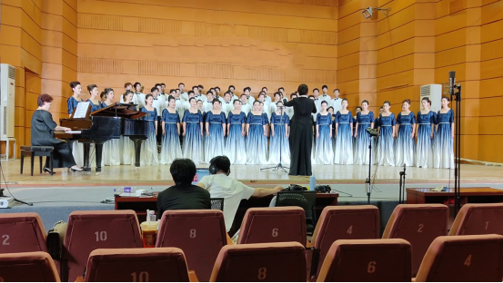 为响应陕西省教育厅关于《中共陕西省委教育工委陕西省教育厅关于举办全省大中小学“唱响新时代”合唱展演活动的通知》(陕教工函【2023】22号)的要求,切实培养广大青少年学生审美和人文素养,音乐系组成70余人的大学生合唱团与石油大学教授合唱团暨黑金女子合唱团的教师们一道,代表学校参加陕西省高校合唱展演活动,并于7月2日成功录制四首合唱作品。指导老师杨美萍教授,钢琴艺术指导白洁、刘洁二位老师,辅导员邓云刚老师及二个合唱团全体团员参加了本次录演。