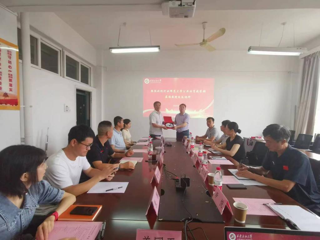 倪振文书记首先对韩广村书记一行的到来表示热烈的欢迎,他表示此次交流调研是学院向优秀单位学习的好机会,希望两校之间可以互相促进,共同进步。韩广村书记向体育学院赠送了学校校庆的纪念品。