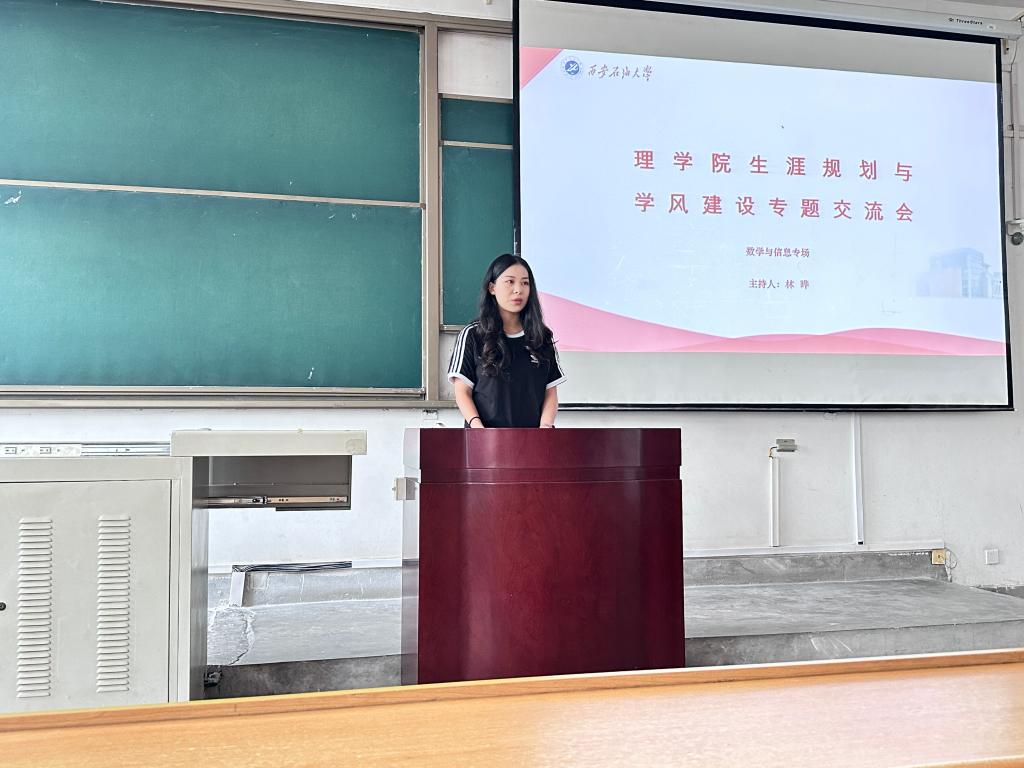 6月16日至20日,理学院分专业相继在鄠邑校区志远楼111会议室、博思楼202教室举办了三场“生涯规划与学风建设”系列交流会。理学院2020级辅导员林晔主持,2020级百余名考研学子参会,2019级优秀考研学子卜裕文、刘新晨、韩悦玲等9位同学分批次进行了经验分享。