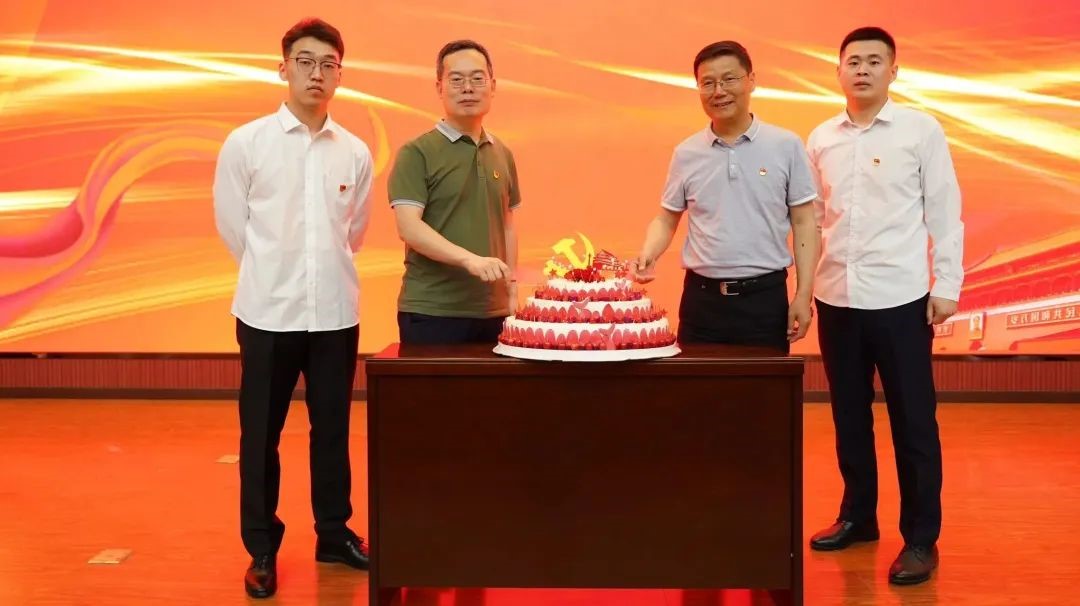 会议结尾,马勇书记和张建高副书记为大家切蛋糕并合影留念,全体同志许下愿望,希望在以后时时刻刻不忘初心、牢记使命。