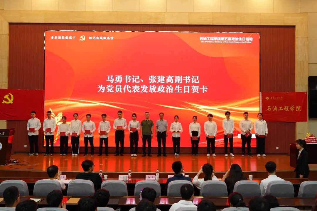 为深入学习贯彻党的二十大精神,强化党员政治身份认同感,教育引导党员时刻不忘“第一身份”,切实发挥党员先锋模范作用,推动党员政治生日正规化、常态化,增强党员意识,进一步凝聚奋进新时代的磅礴力量。2023年6月13日中午12:30石油工程学院在弘石报告厅组织开展了石油工程学院第五届党员“政治生日”会。石油工程学院党委书记马勇、石油工程学院党委副书记张建高、研究生辅导员兼组织员宋兴淼、2019级辅导员王渊、2020级辅导员祖力皮亚、2021级辅导员秦馨雨、2022级辅导员聂康晨出席本次会议,石油工程学院全体党员同志、预备党员同志、第三十一期入党积极分子参加本次活动。
