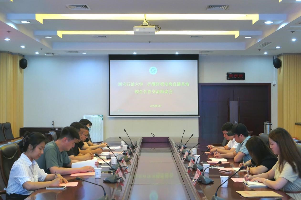 3月25日,浐灞跨境电商直播基地董事长王申闯、浐灞跨境电商直播基地总经理周杰一行4人来校考察交流。校企合作座谈会在鄠邑校区图书馆第二会议室举行,就业指导中心、教务处、实验室管理处、经济管理学院相关人员参加会议。座谈会由樊晓旭主持。