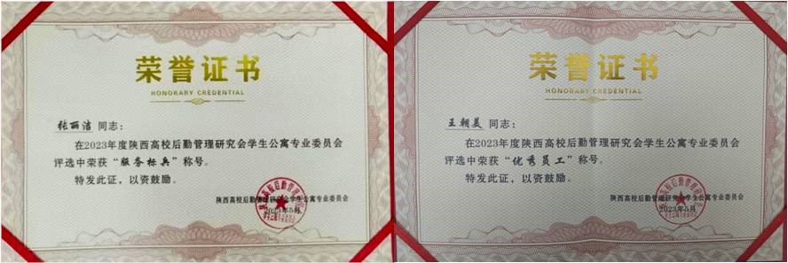 5月26日,由陕西高校后勤管理研究会主办的“2023年陕西高校学生公寓专业委员会年会暨学生公寓专业委员会成立三十周年庆典”上,william后勤处楼宇管理服务中心荣获“陕西高校学生公寓先进集体”荣誉称号,楼宇管理服务中心张丽洁、王朝美同志分别荣获陕西高校学生公寓服务标兵和优秀员工荣誉称号。同时,由楼宇管理服务中心撰写的“不忘初心担使命,立足本职护校园”在公寓专业委员会三十周年主题征文活动中获得特等奖。
