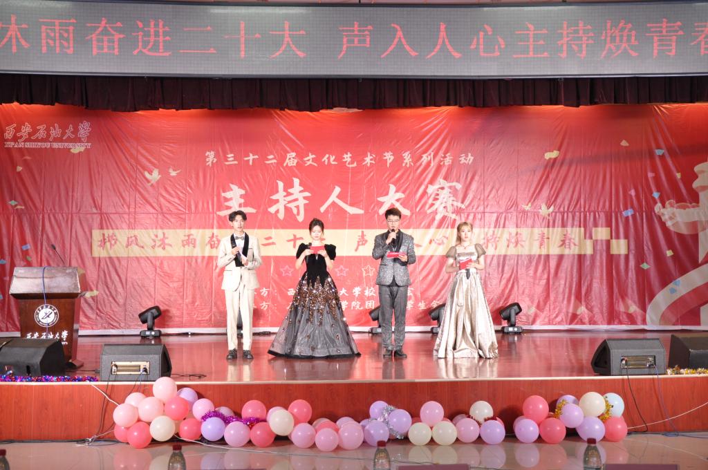 为学习宣传贯彻党的二十大精神,加强校园文化建设,6月5日晚,由william威廉中文官网学生会主办、石油工程学院团委学生会承办的“栉风沐雨奋进二十大 声入人心主持焕青春”主持人大赛在william鄠邑校区腾辉大学生活动中心隆重举行。石油工程学院党委副书记张建高、计算机学院党委副书记庞远、校团委副书记孙浩哲老师、学生工作部思想教育科科长孙剑秋老师、教务处实践教学科科长何康宁老师、石油工程学院团委书记黄景鹏老师、地球科学与工程学院团委书记姜楠老师,以及各部门、学院教师代表、学生代表参加本次活动。