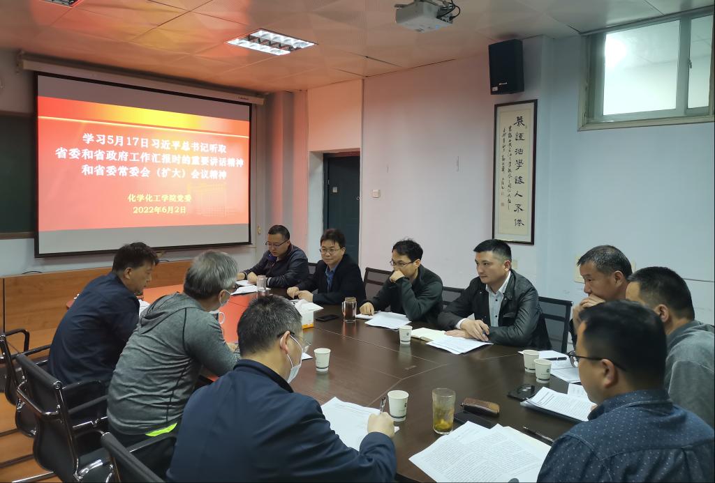 6月2日上午,化学化工学院在雁塔校区2号实验楼212室召开党委理论学习中心组专题学习会。专题学习5月17日习近平总书记听取省委和省政府工作汇报时的重要讲话精神和省委常委会(扩大)会议精神,并安排部署落实主题教育工作。学院党委理论学习中心组成员、学校第三轮巡察组副组长董丙剑参加了会议,会议由学院党委书记司马文龙主持。