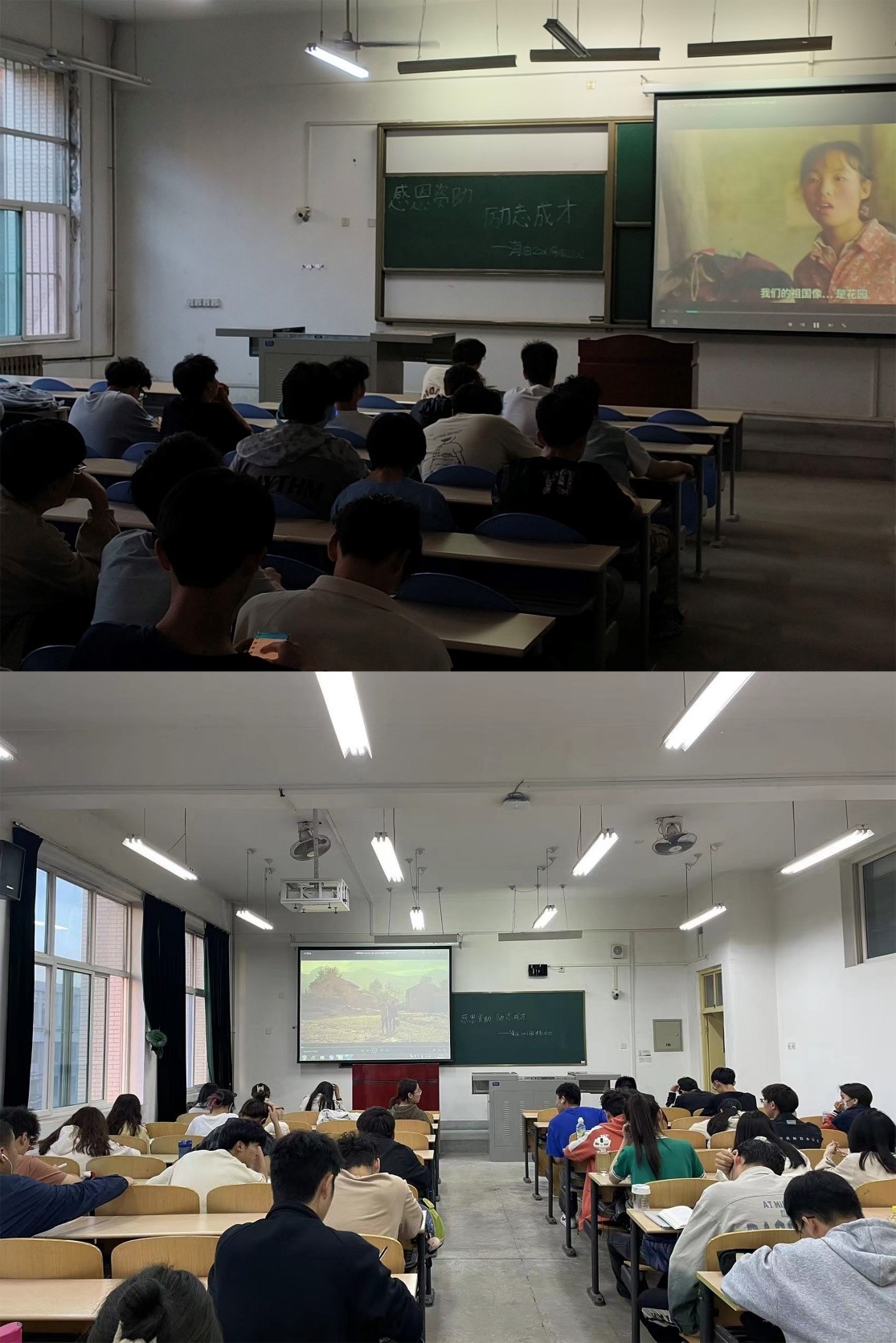 主题教育期间,学院以班级为单位,与主题班会相结合,组织学生观看了一部“励志成长”或者“感恩奉献”题材的主题影片,并且鼓励学生相互分享影片观后感,帮助学生树立战胜困难的信心,坚定锻炼成才的信念,培养知恩感恩的情怀。