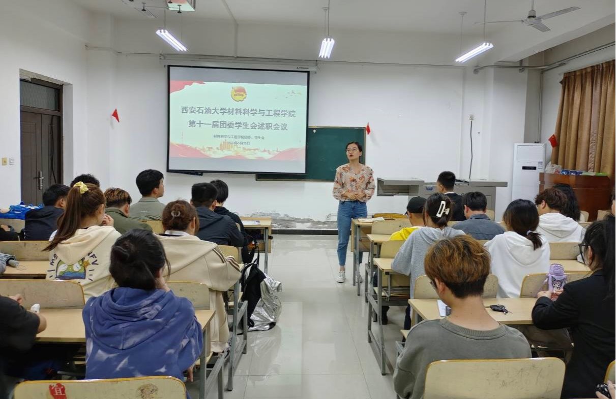 为深入学习党的二十大精神,全面贯彻落实习近平总书记关于青年工作的重要思想,进一步全面提高团学干部的工作能力,5月25日晚在鄠邑校区天工楼401教室,材料科学与工程学院团委学生会召开团学干部述职评议大会,院团委书记郭媛、团学指导老师赵飞出席会议,团委学生会共计60余名成员参会,会议由学院团委副书记文锐思主持。