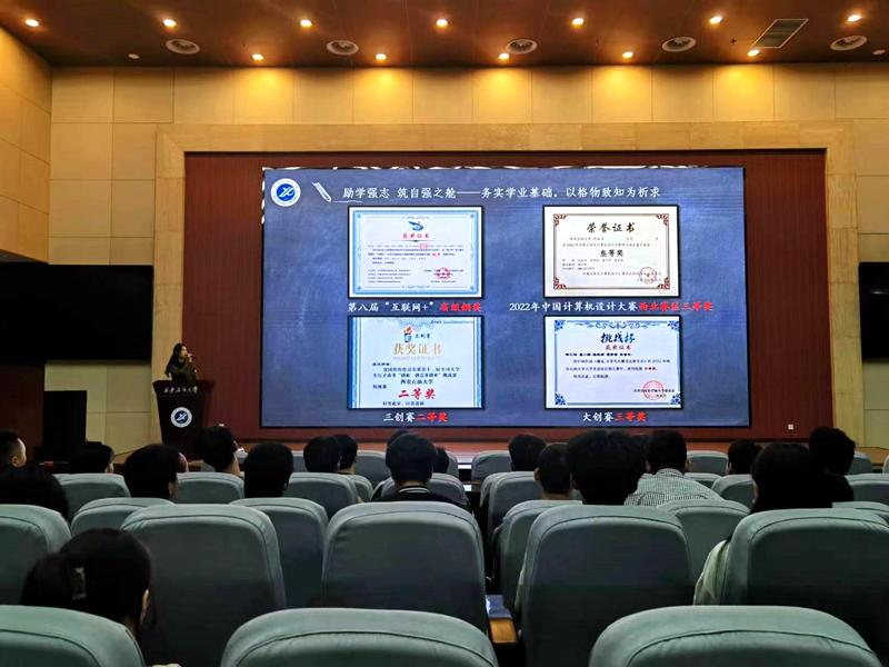 为了引导广大青年学生树立正确的价值观和成才观,促进学风建设,计算机学院于5月23日在鄠邑校区弘石报告厅举办优秀毕业生报告会。本次报告会邀请了学院2019级的四位优秀毕业生代表宋紫欣、任向勃、李梦迪和刘百乐作为主讲嘉宾,2022级辅导员李晨、姚谦以及2022级全体学生参加了报告会。