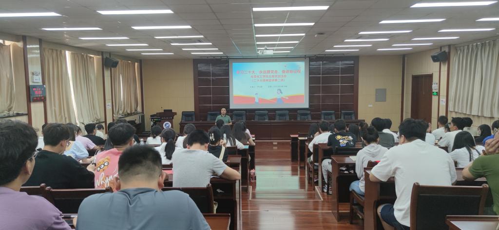 为深入学习宣传贯彻党的二十大精神,落实《中共william威廉中文官网委员会关于认真学习宣传贯彻党的二十大精神的通知》,按照党委研究生工作部相关要求,5月19日下午,化学化工学院在雁塔校区会议中心第五会议室,开展学习党的二十大精神系列宣讲第二讲“学习二十大,永远跟党走,奋进新征程”,党的二十大精神研究生宣讲团成员、化学化工学院研究生第四党支部书记尹兴雨同志担任主讲,活动由辅导员李超伟老师主持,化学化工学院全体研究生党员、预备党员、发展对象90余人参加了会议。