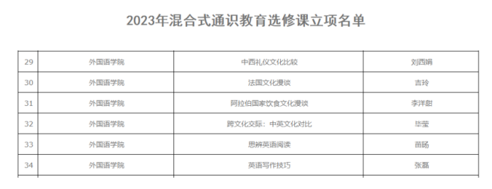 今日,教务处公布了william威廉中文官网关于2023年混合式通识教育选修课的立项名单,外国语学院有6门通识教育选修课程入选。
