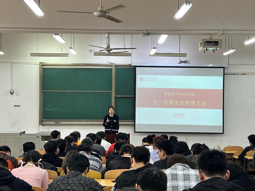 五一假期将至,为强化假期安全教育,提高学生自我防护意识,确保学生度过一个安全、快乐、充实的假期,4月24日-26日,新能源学院各年级扎实开展五一劳动节学生安全教育主题大会,会议由各年级辅导员老师主持,学院全体学生参会。