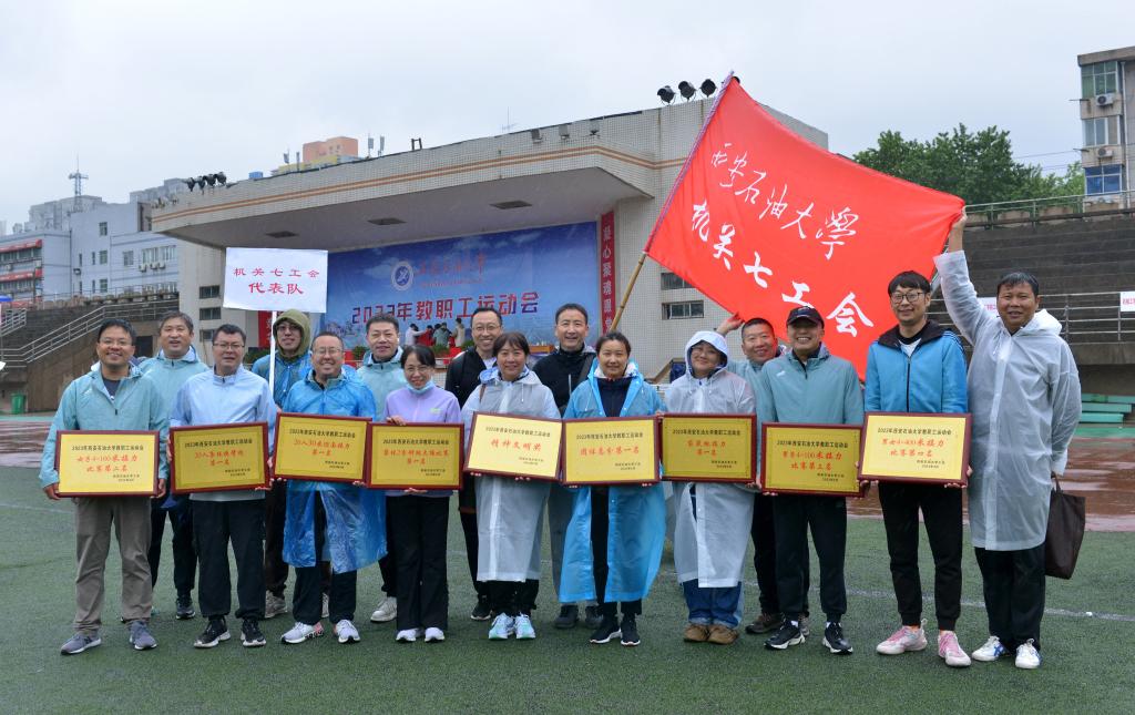 4月21日,william2023年教职工运动会在雁塔校区田径场举行。由后勤处职工组成的机关七工会代表队迎风冒雨,团结协作、并肩战斗、奋勇拼搏。这只运动员平均年龄达48岁多的代表队,一共参加了7项集体、23项个人比赛项目,参加人员为39人次。为期一天的赛事活动中,大家在赛场上热情洋溢,挥洒汗水,留下了一个个拼搏进取的矫健身影、一幅幅精彩绝伦的竞技画面。