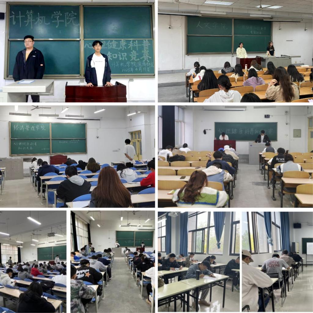 本次知识竞赛由学生心理成长指导中心主办,经济管理学院承办。前期,各院(系)积极宣传,广泛动员,以线上线下相结合的方式进行院(系)初赛。根据初赛成绩,择优推荐三名选手作为院(系)代表队参加复赛。复赛以闭卷考试的方式进行选拔,题型由单选题、多选题、填空题、判断题、材料分析题构成。考试期间,各院(系)参赛选手严格遵守考试纪律,认真仔细审题,沉着冷静作答。