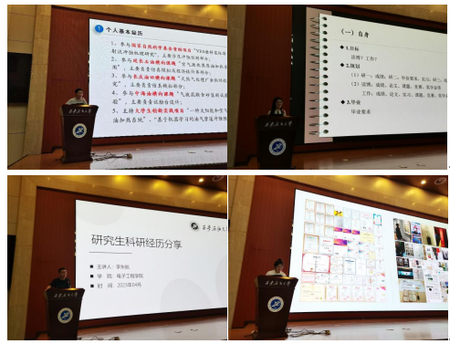 分享会上,四位国家奖学金获奖研究生结合自身的学习经验、科研经历等进行了经验分享,并给同学们提出了几点建议:一是要勤于实践,学会将理论与实践相结合,在实践中增长才干,积极投身于科研之中,不断开阔视野,奋发向前;二是要积极参加科技竞赛,参与申报科研项目,以目标为导向,积极投入科学研究中;三是要善于学习,学习身边老师、同学的优良品质,培养良好的科研习惯,不断充实完善自身。最后,在场研究生就学业、学术、生活等方面的相关问题与国奖获奖研究生进行了交流,四位研究生结合自身学习生活实际给予解疑答惑,大家纷纷表示受益匪浅。