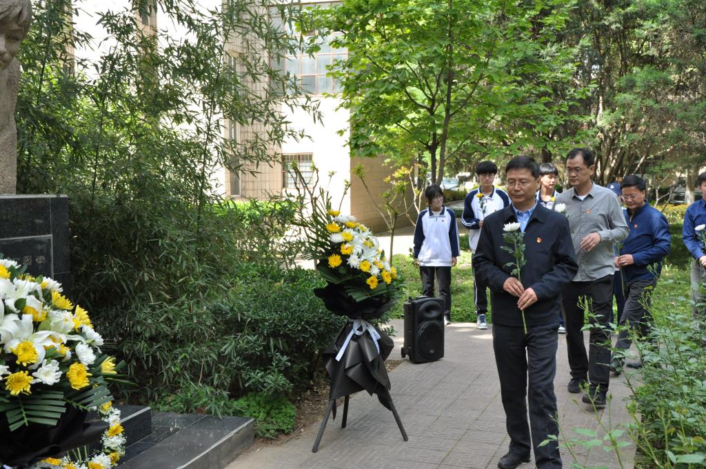 活动最后,学生党员代表王彤带领全体师生进行“春雨”精神宣誓。全体师生向唐春雨烈士雕像默哀一分钟并依次敬献鲜花。