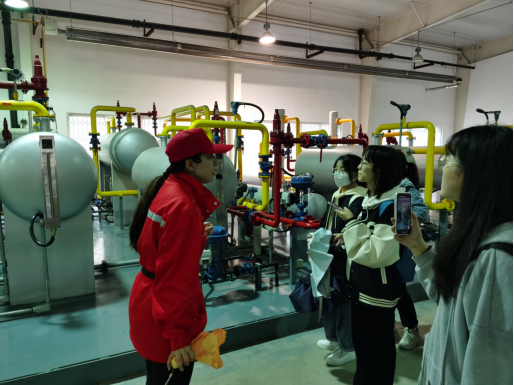 在黎桉安、惠妙妙两位老师带领下,学生先后参观学习了油田实训区、气田实训区、天然气处理训练厅、抽油机展示区,撬装设备展示区、油气田技能训练厅。在学习过程中,同学们认真聆听,仔细观察,通过视频、照片、笔记等多种形式认真记录,通过讲解老师深入浅出地介绍,同学们对油气田地面生产工艺流程及设备、天然气处理净化工艺流程等情况进行了全面的了解。