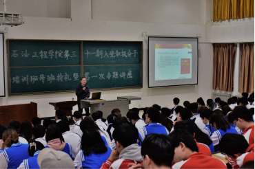 4月3日晚上19:00,石油工程学院在石工地科楼115教室成功举办第三十一期入党积极分子培训班开班典礼暨第一讲,本次活动线上线下同步进行。石油工程学院党委副书记张建高、学生工作办公室主任黄景鹏及各年级辅导员出席本次活动。