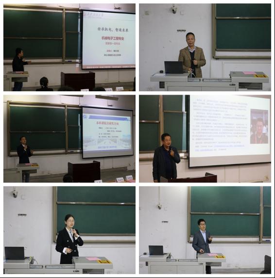 会后,机械电子工程专业“智能机械”讲座第一讲开讲,由魏文澜副教授主讲。他主要介绍了机械工程学院的学科和专业设置,智能机械系师资和发展概况和“国家一流专业”机械电子工程专业的内涵,重点讲解了本专业的研究方向与学科发展前沿、人才培养目标和相关办学条件以及同学们较为关注的毕业生主要去向等内容。随后,全系教师逐一介绍了自己的主要研究方向和科研要点。