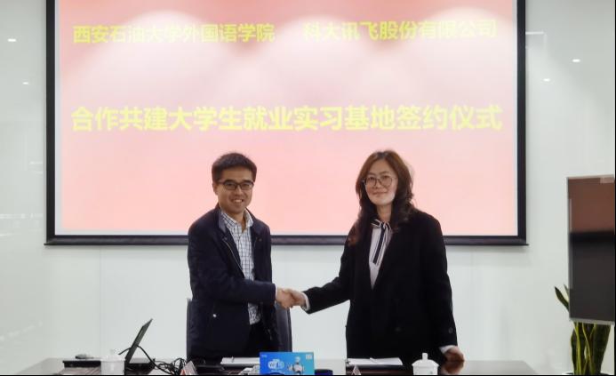 田虹霞介绍了学校和学院发展的历史沿革,学院的学科建设、专业设置、办学特色、教学科研工作情况,详细介绍了学院人才培养特色和学生培养情况,希望双方不断拓展合作模式,在毕业生就业、人才培养、教学科研、平台共建、实习实训等方面深化交流合作,促进产学研深度融合,加强优势互补,实现校企共赢。并代表学院与科大讯飞股份有限公司签订合作共建大学生就业实习基地协议。