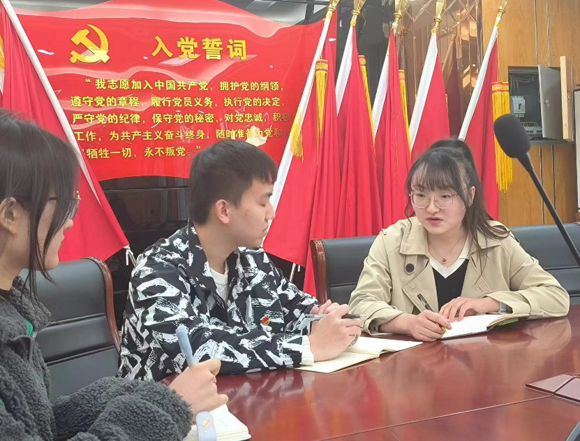 支部共建交流后,经济管理学院管科系学生党支部的学生党员与2022届支部优秀毕业党员代表袁娜同志进行交流,以问答的方式,就党员在实际生活中如何增强党性修养、对大四学弟学妹们的意见建议等进行访谈,充分发挥优秀党员的示范引领作用,引导在校支部学生党员做好自身建设和生涯规划。