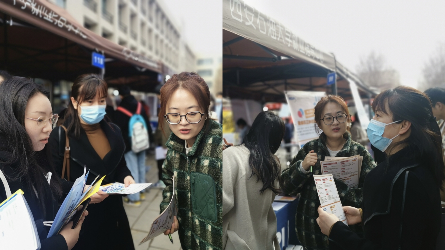 学院提前四天收集与环境设计、视觉传达设计、新闻学、汉语言文学专业相关的企业信息,分专业归类整理,在年级群中动员造势。双选会当天,学院进一步将招聘单位的具体岗位信息与学生进行匹配。方松林副院长带领研究生毕业生,与陕西万唯传媒有限公司等单位交流推荐;新闻系副主任马可老师与用人单位热情交流,进一步了解单位需求专业人才的情况,并推荐部分毕业生提交简历;学工办主任付强与隽美经纬电路有限公司等参会单位交流,拓展十余个就业岗位;2019级本科生辅导员王凯杰现场联系陕西投资集团有限公司、西安工业经济职业学校等单位,推荐多名毕业生到场参加初步面试,初步达成意向。同时,王凯杰现场向毕业班学生解释目前招聘形势和就业难度,建议学生扩大意向行业范围,将目光放在更广的非专业相关岗位上。他建议学生认真评估自身能力,明确自身能力边界,适当降低期望,树立“先就业再择业”的就业观念。