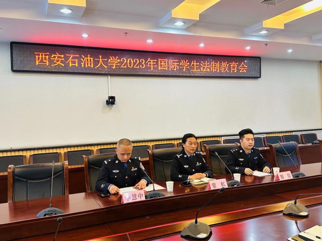 2023年3月16日上午,国际教育学院在鄠邑校区图书馆第二会议室召开了2023年春季学期鄠邑校区留学生法律法规宣讲会。会议邀请了西安市鄠邑区出入境管理大队队长常虹、外事警官李惠中、沣京路派出所外事警官郑昊来校为鄠邑校区留学生进行春季学期法律宣讲。