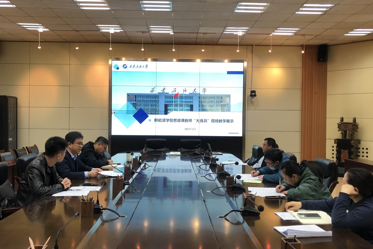 为深入学习贯彻党的二十大精神,认真落实习近平总书记在学校思想政治理论课教师座谈会上的重要讲话精神,进一步推动课程思政建设,提升育人质量,3月1日下午,新能源学院在雁塔校区会议中心第二会议室举办了思政课教师“大练兵”现场讲评活动,学院党委书记宋海洋、院长黄海、副院长王治国、马克思主义学院郑伟副教授及各系部主任参加活动并进行了现场指导,学院部分专业教师到场进行了观摩学习。