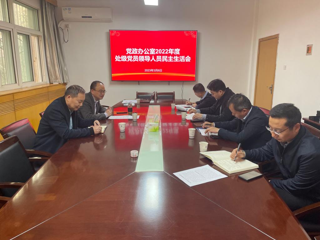 3月6日上午,党政办公室在雁塔校区行政楼二楼党员活动室召开2022年度处级党员领导人员民主生活会。第二督导组组长、纪委副书记齐仲锋到会指导。会议由党政办公室主任赵健主持。党政办公室全体处级党员领导人员参加会议。