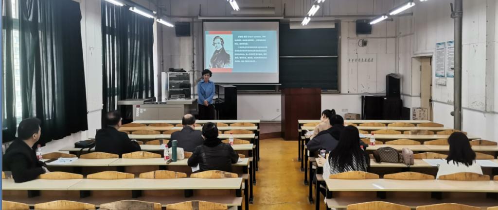 本次思政课教师“大练兵”活动,音乐系通过集体研讨、集中备课,在全员参与、观摩教学的基础上,从专业特点出发,结合思政元素,将经典红色革命历史故事、社会主义核心价值观、爱国爱校情怀、中国民族优秀传统音乐文化融入教学中。朱玥老师讲授了《声乐》课程,题目为“中国民族歌剧《江姐》唱段——《红梅赞》”;薛安玲老师讲授了《中外钢琴艺术作品赏析》课程,题目为“舒曼的音乐人生——《a小调钢琴协奏曲》赏析”。