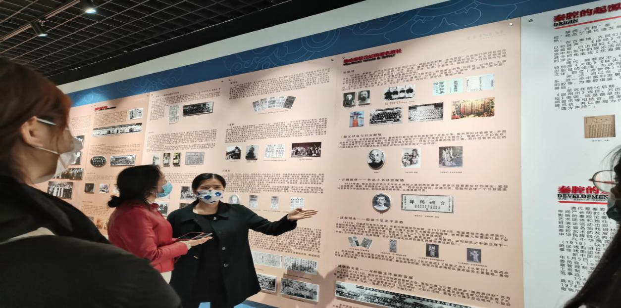 研学师生还参观了秦腔博物馆,通过王月老师的生动讲解和现场沉浸式体验,秦腔文化的丰富内涵和艺术魅力深深震撼了同学们,大家深刻感受了优秀传统文化的洗礼,直呼“走出去”体验百年名校丰厚的人文历史文化底蕴是十分难得的宝贵机遇,对提高自身文化艺术修养和增强文化自信至关重要。