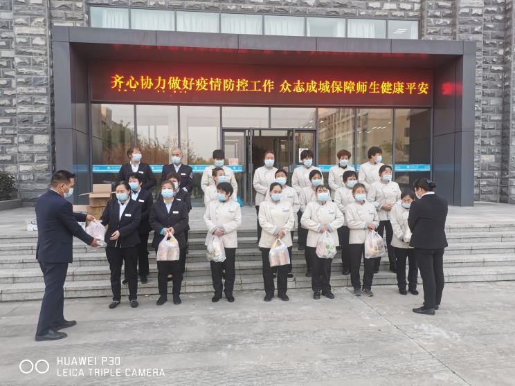 封闭在校,相比平时,工作压力大,工作时间长;相比在家,生活成本高,无法照顾家庭,后勤处想员工之所想,急员工之所急,会同第三方公司采取各种形式慰问一线员工,体现人文关怀,发放牛奶、面包、方便面、饮料、水果、洗护用品、劳保用品等,同时各公司也及时给予入住校园封闭管理的员工相应的生活或工作补贴。