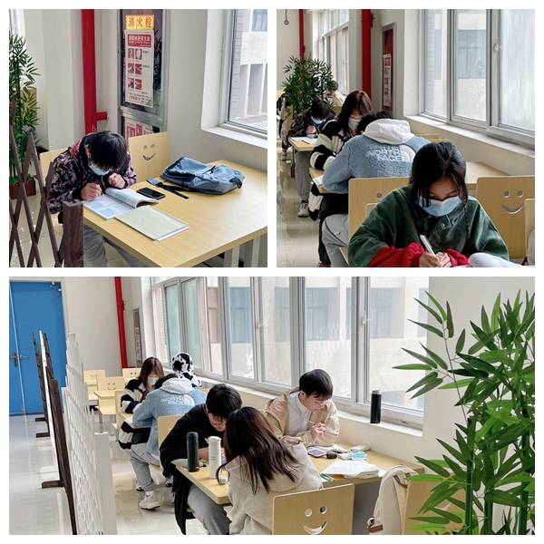 近日,备战考研的学子们已经陆续走进文化长廊,学生们表示拥有这样的学习区域大大弥补了同学们自习需求的缺口,以后的自习将更加方便了。良好的走廊空间,新颖的图案设计,私人的储物空间,使得文化长廊烘托起了浓郁的考研气息,在这样温馨的学习环境中,不同年级不同专业的学生互相交流、互相学习、分享经验,营造出了“比学赶帮超”的良好学习氛围。