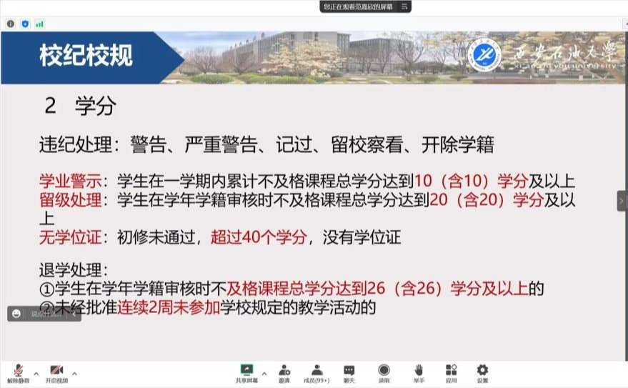 人文学院2022级辅导员范嘉欣老师召开了线上年级大会,会上叮嘱新生注意安全问题,包括宿舍安全隐患、提防网络电信诈骗、交通消费安全、防盗防传销等内容,强调了学校的各项校纪校规,希望大家重视学生手册的学习,要求每一位学生学规矩、守规矩、懂规矩,并对新生提出注意时间节点、重视人际关系、提升自主性等自身发展要求。