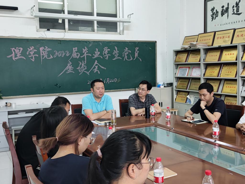 6月22日下午,理学院在鄠邑校区志远楼111会议室召开2022届本科毕业生党员代表座谈会。理学院党委副书记马小刚主持,学工办主任、2022届本科毕业生辅导员丁亦喆,任课教师代表冯德全,2022届16名本科毕业生党员代表参会。