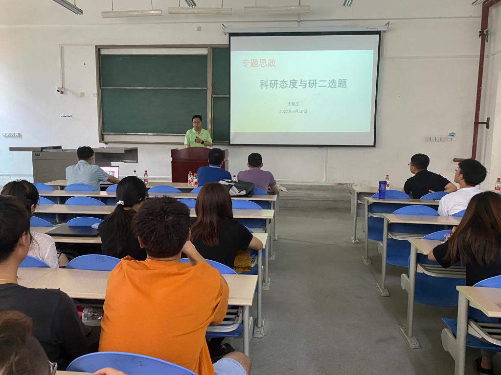 6月10日,计算机学院党委副书记、院长王魁生在鄠邑校区博思楼102教室为2021级研究生讲授专题思政课。2021级研究生辅导员田嘉兴主持,一百余名研究生参加。