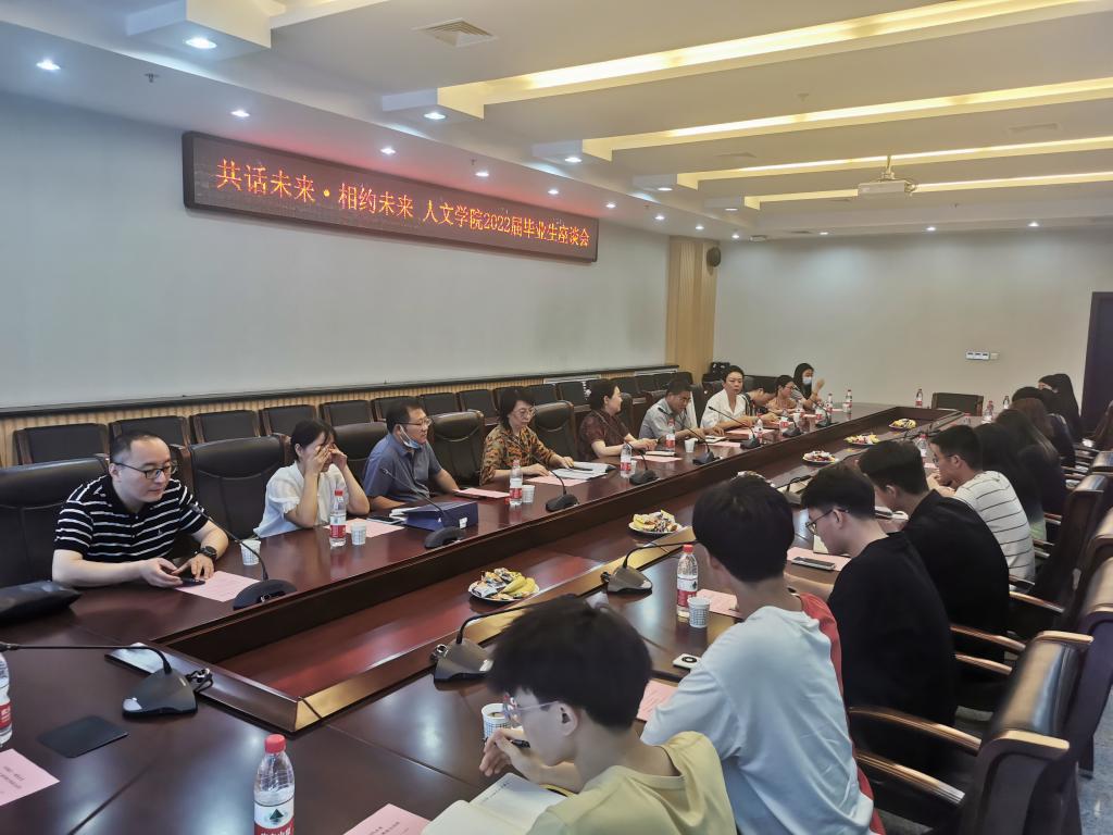 为加强毕业生和学院之间的沟通交流,做好毕业生关怀,引导毕业生积极为学院发展建言献策,6月16日下午14点,人文学院在鄠邑校区图书馆第二会议室举行2022届毕业生“共话成长、相约未来”座谈会。学院党委书记余小勇、院长李涛、副院长方松林和黄庆丰,以及各专业老师出席了座谈会,座谈会由党委副书记盛丹主持,学院12名本科生代表及2名研究生代表参加。