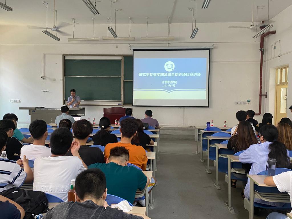 6月10日下午,计算机学院在鄠邑校区博思楼102教室举办研究生专业实践及联合培养项目宣讲会。张留美副院长主持,西安翔腾微电子科技有限公司张荣华主讲,学院王魁生院长、公司专项项目负责人和2021级研究生参加。