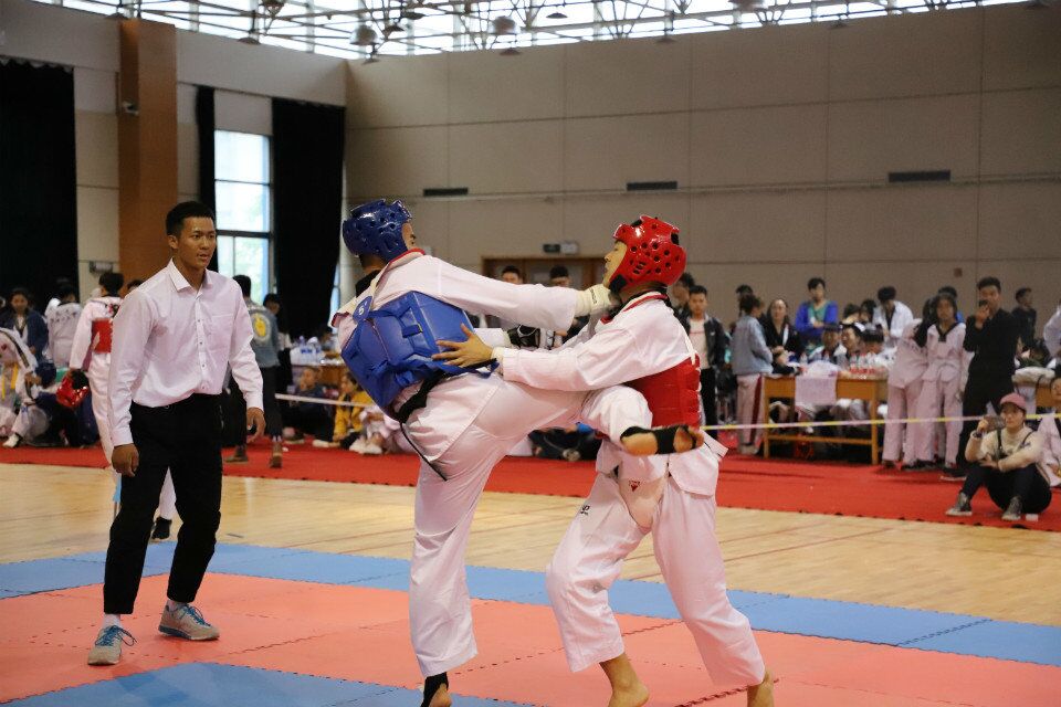 为提高学生身体素质,丰富学生校园生活,加强高校间合作与交流。william跆拳道协会于2018年5月6日在西安理工大学曲江校区学生活动中心参加了“西安理工大学首届跆拳道高校邀请赛”。william跆拳道协会在社团指导老师,石油工程学院2017级辅导员孙浩哲老师的精心指导下,组成由副会长张越同学担任领队,徐旸、廖碧霞和雷飞飞等17名同学担任队员的代表队参加比赛。