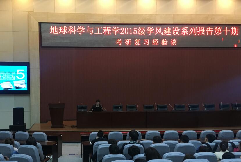 此次报告会是地学院学风建设的一项具体工作,学院坚持开展考研动员、复习指导、考研服务,不断推动学风建设工作取得新成绩。
