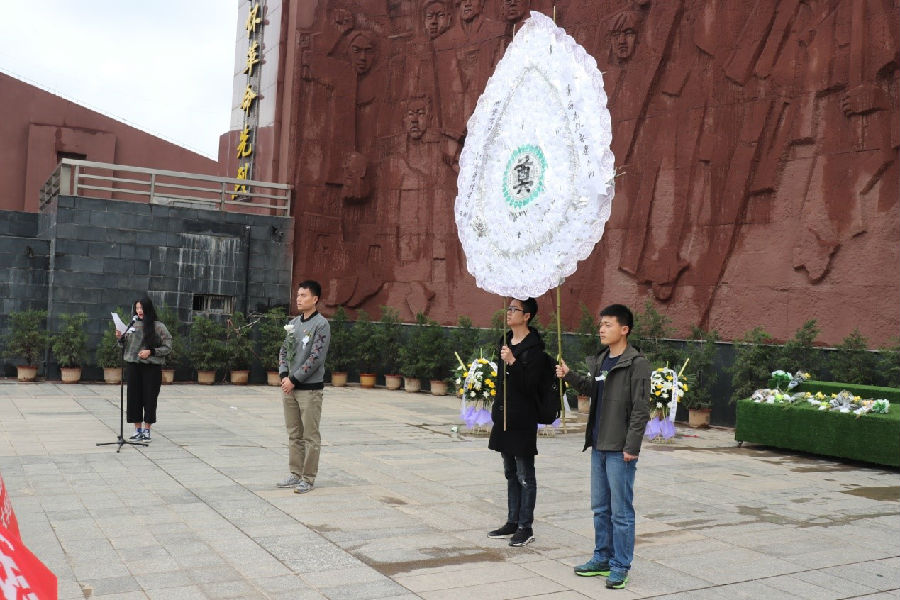 商管类1702班唐颖作为代表致悼词。她说到,矗立在大家面前的烈士丰碑,诉说着英雄们光荣而无悔的事业,岁月的风尘早已在它身上刻下斑驳的印记,让大家无法不回想起那段沧桑沉重的往事。七百余位革命烈士长眠于此。他们为追求救国救民的真理抛头颅,洒热血;为中华民族的解放事业前仆后继,视死如归。作为新时代的莘莘学子,更应充满爱国之情,树立报国之心,努力学习,继承先烈遗志,为家乡的建设、为祖国的富强而努力奋斗。