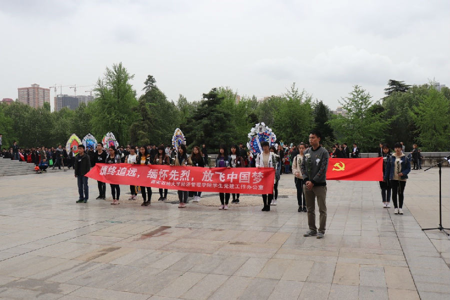 4月5日上午,经济管理学院 “慎终追远,缅怀先烈,放飞中国梦”主题党日活动在爱国主义教育基地西安烈士陵园举行。学院组织员武威老师、党工办部分学生干部、学生党员和入党积极分子代表近20人参加。