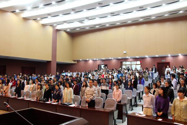 外国语学院党委书记廖敏、副院长王文化、各专业负责人、班主任以及全体学生参加了本次大会。
