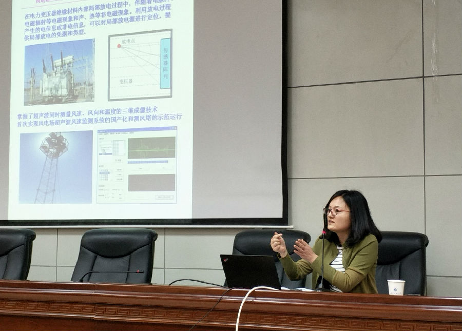张超助理研究员首先介绍了中科院电工所工程电磁场及应用技术研究部的概况,然后结合研究部所承担的国家科技支撑项目、国家自然科学基金、国家电网公司合作项目,对研究部形成的几大关键技术逐一进行了专业讲解,其中包括金属磁记忆无损检测技术、超声波与电磁在线检测技术、有源降噪技术、人体压力分布成像技术、磁感应成像和感应式磁共振成像技术、地面金属矿电磁探测技术、磁热声成像技术、阵列磁声电阻率测井技术、基于磁声电耦合的过套管电阻率测井技术、超级计算中心、磁谐振式无线电能传输技术等。