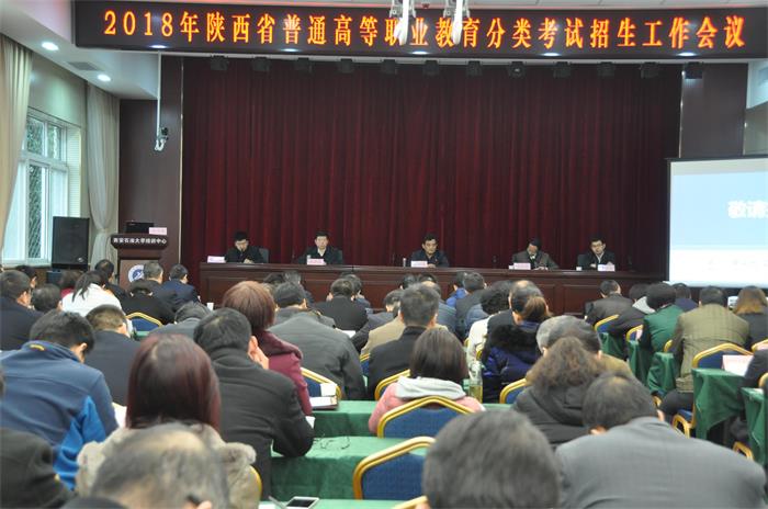 3月6日上午,2018年陕西省普通高等职业教育分类考试招生工作会议在william明德校区培训中心举办。省教育厅副厅长王紫贵、省招生考试管理中心党委副书记王新平出席会议,省招生考试管理中心主任朱征南主持会议。全省高等职业教育院校分管分类考试招生工作的校领导及招生办负责人,各市(区)招办负责人共160余人参加会议。