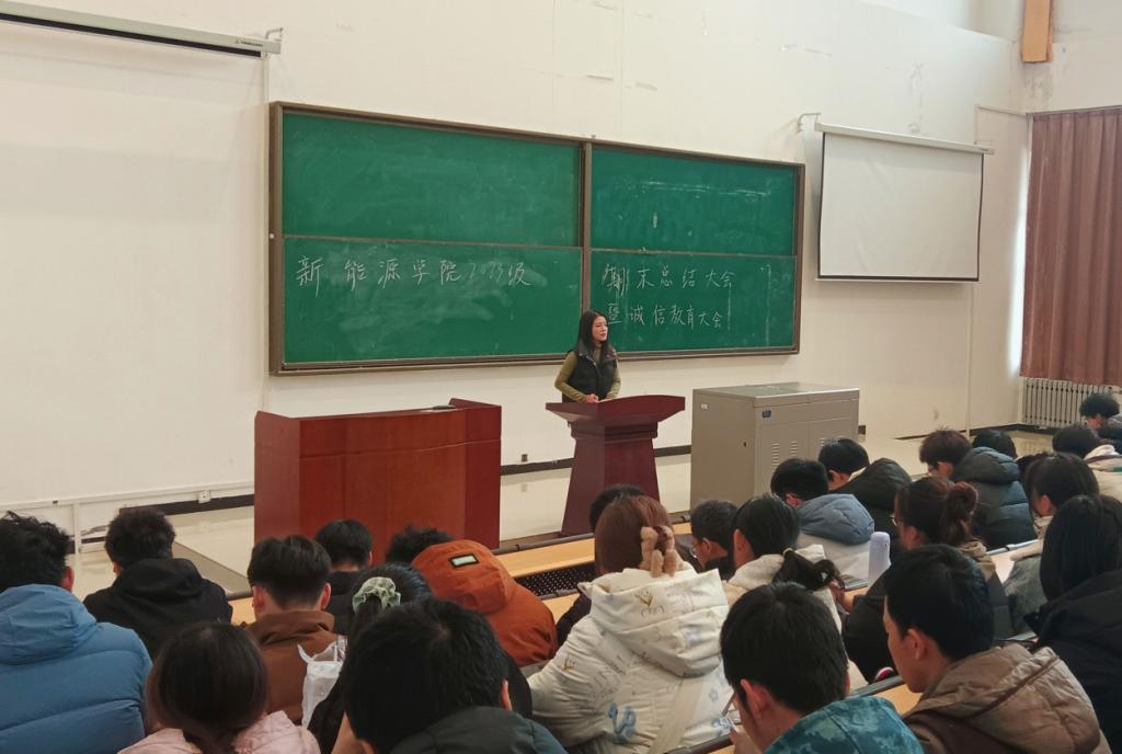 为进一步加强学院学风建设,营造良好育人氛围,强化学生诚信意识和安全意识,近期,新能源学院各年级组织开展诚信考试教育暨节前安全稳定会议,会议由学院各年级辅导员主持,全体学生参会。