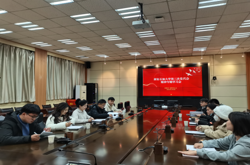 1月9日,校团委分别在鄠邑校区图书馆第二会议室和雁塔校区会议中心第二会议室召开学校第三次党代会精神专题学习会,校团委全体成员,校院两级学生会、研究生会主席团,第26届研支团共50余人参加会议。会议由校团委书记何国强主持。