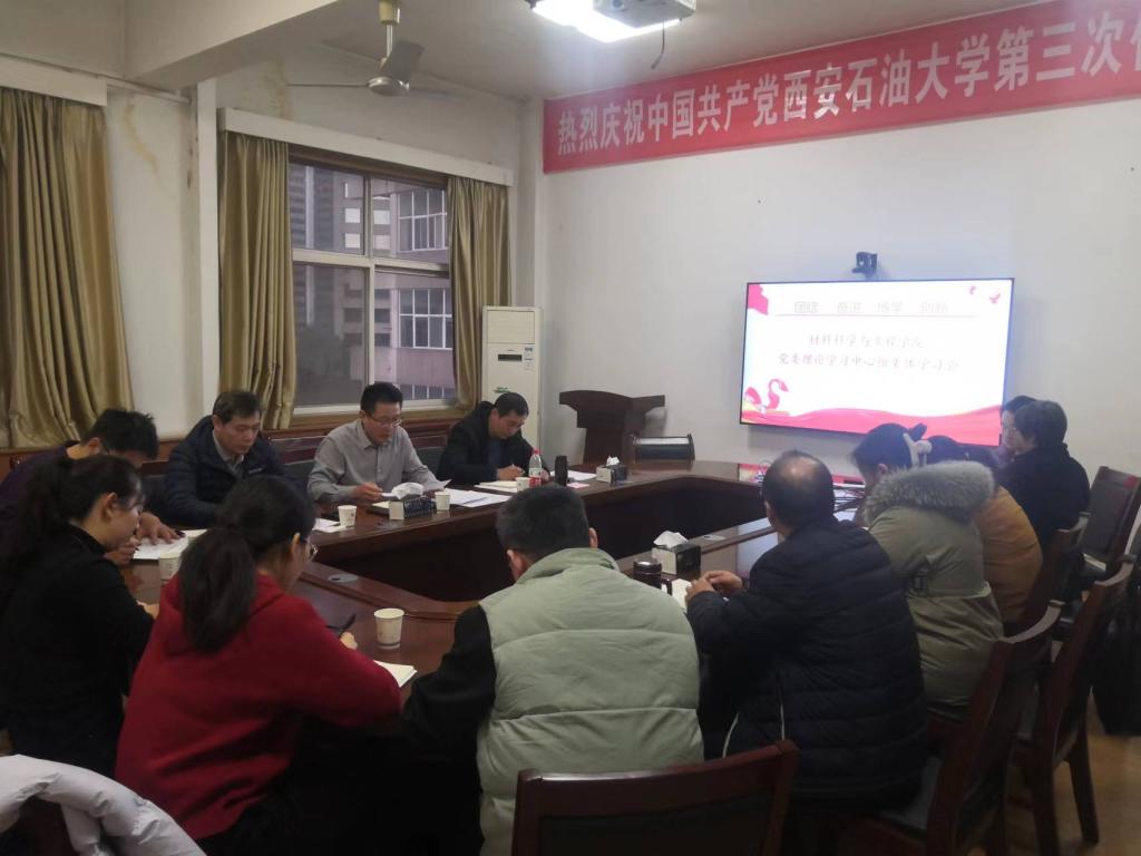 1月9日下午,材料科学与工程学院在雁塔校区4号实验楼312会议室召开党委理论中心组学习会,学院党委委员,各系主任等中心组成员参加学习,会议由院党委书记林红先主持。