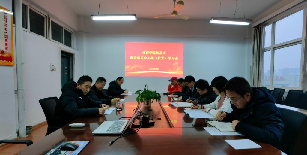 2月29日下午,体育学院党总支在雁塔校区华油能源楼733会议室召开理论学习中心组(扩大)学习会,专题学习习近平总书记在中共中央政治局第十一次集体学习时的重要讲话精神和在中央全面深化改革委员会第四次会议上的重要讲话精神、中央和国家机关警示教育会会议精神等内容。学院理论学习中心组成员、教工党支部书记和各办公室主任参加会议。会议由学院党总支书记苟毅飞主持。