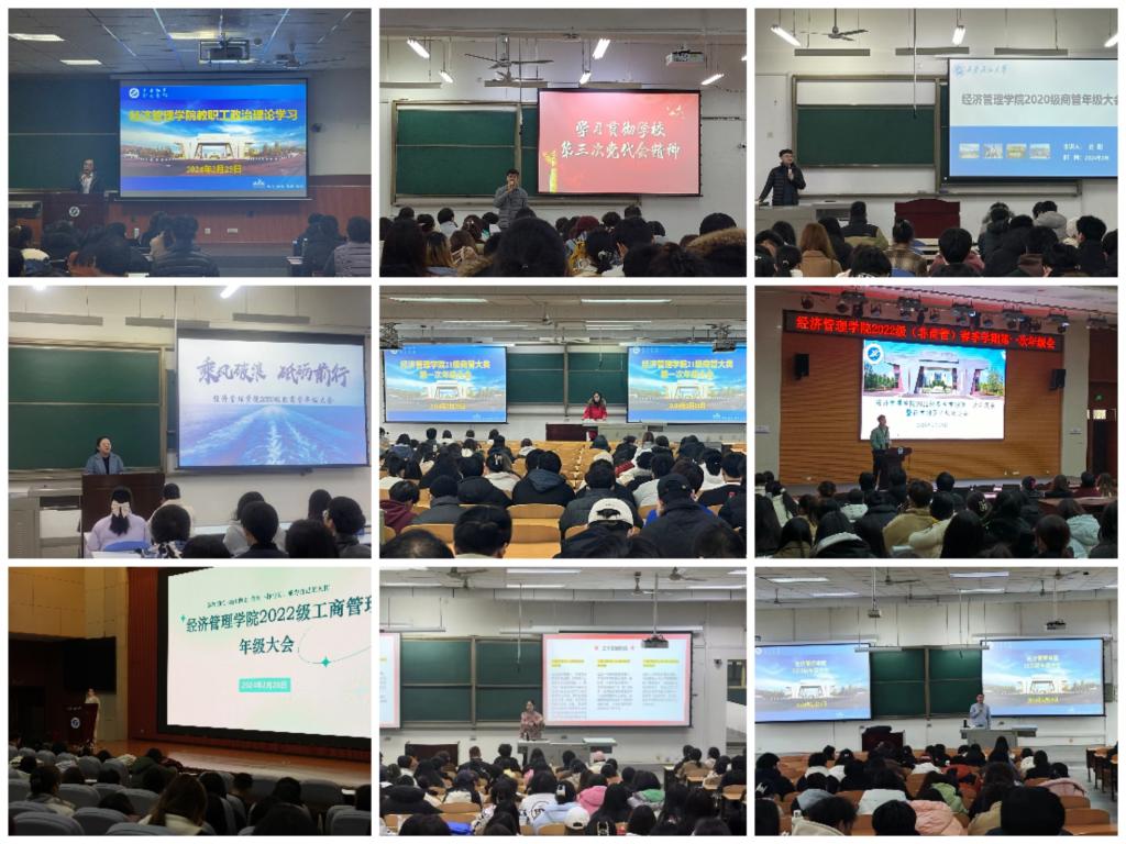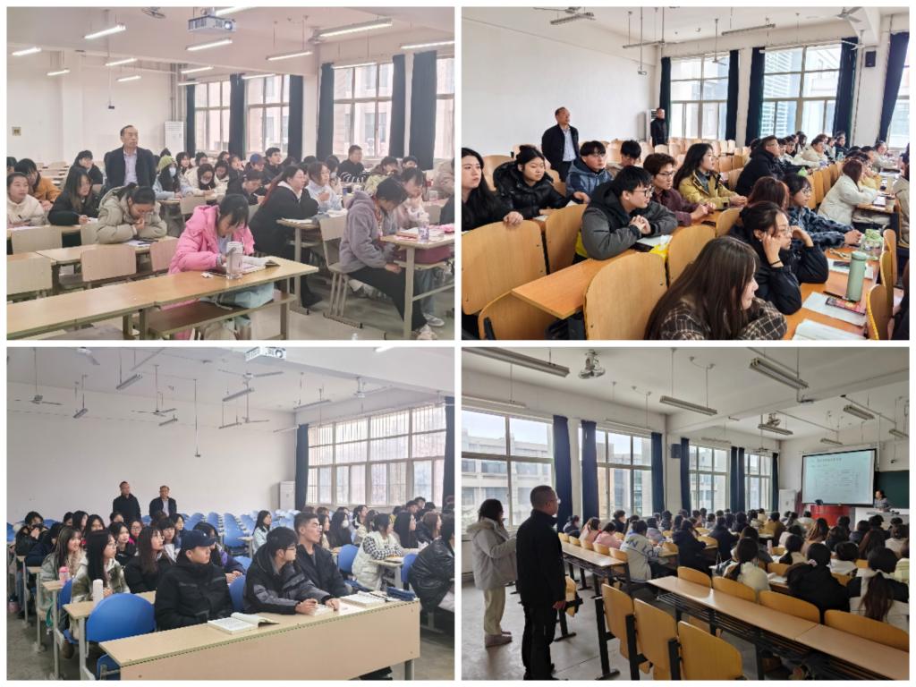 四是聚焦收心归位,凝聚共识向前进。为督促师生尽快收心调整状态,以成绩“归零”、思想“归心”、人员“归位”的状态,形成马不停蹄、提速争先的浓厚氛围,起好步、开好局。2月25日,学院召开教职工大会,进行政治理论学习,部署新学期各项工作,明确目标、找准定位、凝聚共识。2月27—28日,学院各年级召开年级大会,组织好新学期的“开学第一课”。2023级从课堂学习、早操晚自习出勤、活动参与度出发,要求学生夯实基础,做好个人大学规划。2022级围绕学业警示、学科竞赛、考风考纪等方面展开,鼓励同学们积极参与各项比赛,增强综合能力。2021级将考研、就业工作前置,积极动员学生提早进行规划。2020级就新学期毕业论文准备、考研复试、实习请假等方面进行讲解。团学、党工办召开全体学生干部大会,明确新学期各项任务,鼓舞信心,动员学生干部以新的精神状态投入到新一年的工作中。
