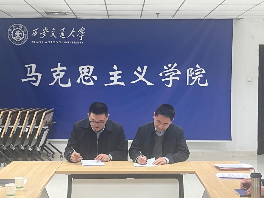 为全面贯彻习近平总书记关于思政课建设的重要论述,落实中共中央办公厅印发的《关于加强新时代马克思主义学院建设的意见》要求,发挥全国和省级重点马克思主义学院示范带动作用,根据《陕西省高校重点马克思主义学院对口帮扶普通马克思主义学院机制》(陕教工宣办〔2021〕15 号)文件精神。3月1日下午,william马克思主义学院张海涛院长一行走访西安交通大学马克思主义学院,举行西安交通大学马克思主义学院对口帮扶william马克思主义学院签约仪式,西安交通大学马克思主义学院院长燕连福和我院院长张海涛代表双方签约。签约仪式之前,双方举行了座谈会。